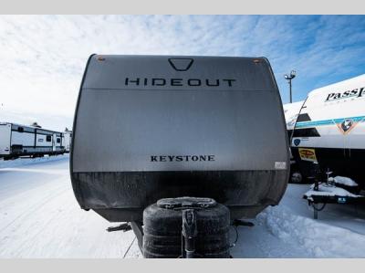 With any Hideout travel trailer by Keystone, you will find functional features and comfort at every turn! Each one is built with tinted safety glass windows and a walkable roof for added durability. There are also Solid Step entry steps outside, along with an outside shower, heavy-duty stabilizer jacks, a spare tire kit and Tire Linc TPMS prep. You'll love the pressed membrane premium countertops inside, plus a decorative tub surround, LED lighting, blackout night shades, and many more comforts. Additional features include a tankless water heater, a porcelain foot flush toilet, a power tongue jack, and an XL entry assist handle to name just a few!